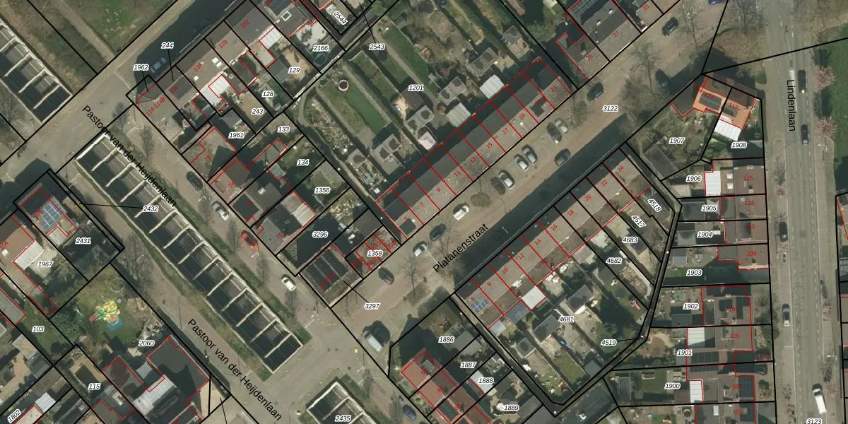 Het perceel waarop Platanenstraat 7 staat heeft een oppervlakte van 2455 m². Dit is een zeer groot perceel. De perceeloppervlakte wordt geregistreerd door het Kadaster. Gedetailleerde informatie over de maten van dit perceel kunt u vinden in het rapport Kadastrale kaart met maatvoering van Platanenstraat 7.