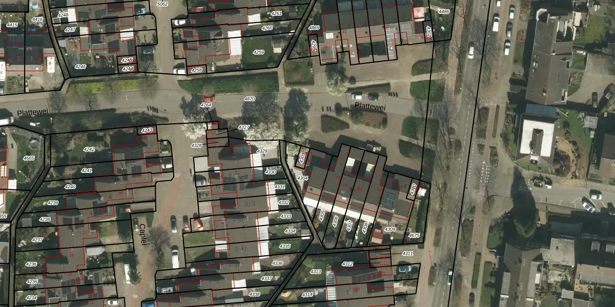 Plattewei 20-G-1 is gelegen op kadastraal perceel KRD00F4303. Deze kadastrale aanduiding is uniek en wordt gebruikt door het Kadaster om eigendomsrechten en andere zakelijke rechten vast te leggen. Het perceel maakt onderdeel uit van de kadastrale gemeente Kerkrade.