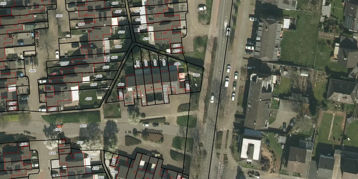Plattewei 29 is gelegen op kadastraal perceel KRD00F4301. Deze kadastrale aanduiding is uniek en wordt gebruikt door het Kadaster om eigendomsrechten en andere zakelijke rechten vast te leggen. Het perceel maakt onderdeel uit van de kadastrale gemeente Kerkrade.