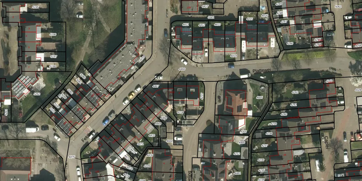 Plattewei 4 is gelegen op kadastraal perceel KRD00F4214. Deze kadastrale aanduiding is uniek en wordt gebruikt door het Kadaster om eigendomsrechten en andere zakelijke rechten vast te leggen. Het perceel maakt onderdeel uit van de kadastrale gemeente Kerkrade.