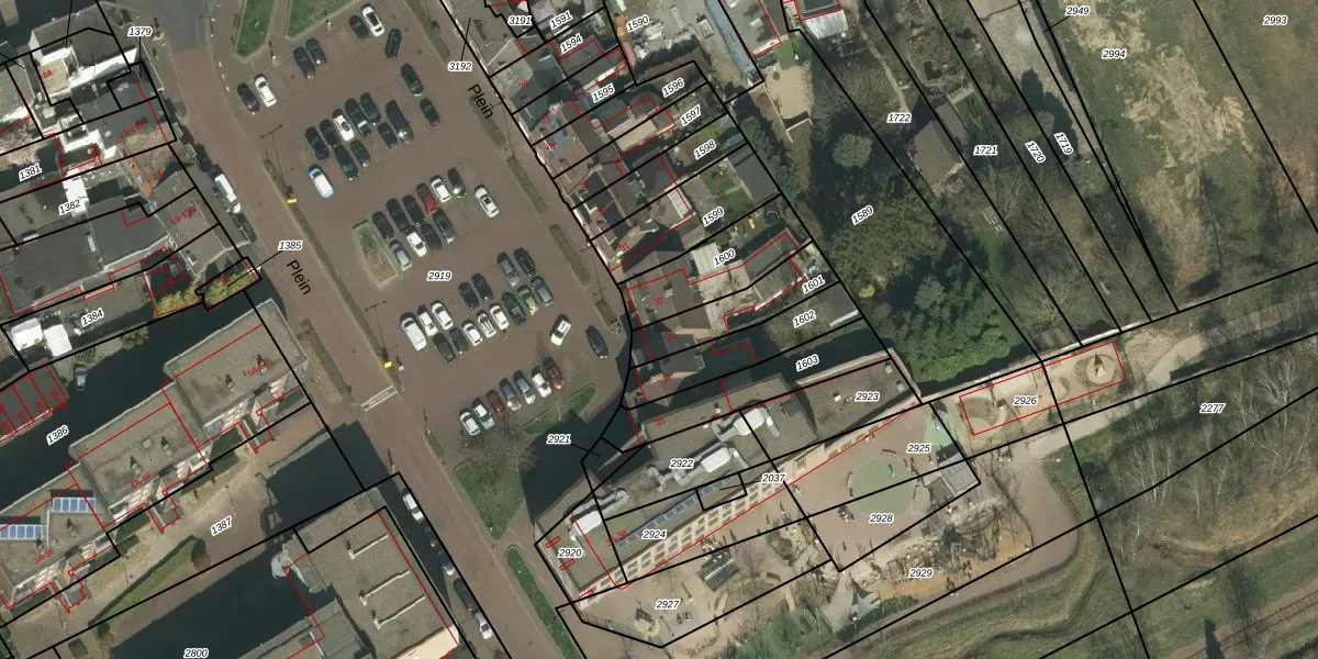 Het perceel waarop Plein 33 staat heeft een oppervlakte van 190 m². Dit is een middelgroot perceel. De perceeloppervlakte wordt geregistreerd door het Kadaster. Gedetailleerde informatie over de maten van dit perceel kunt u vinden in het rapport Kadastrale kaart met maatvoering van Plein 33.