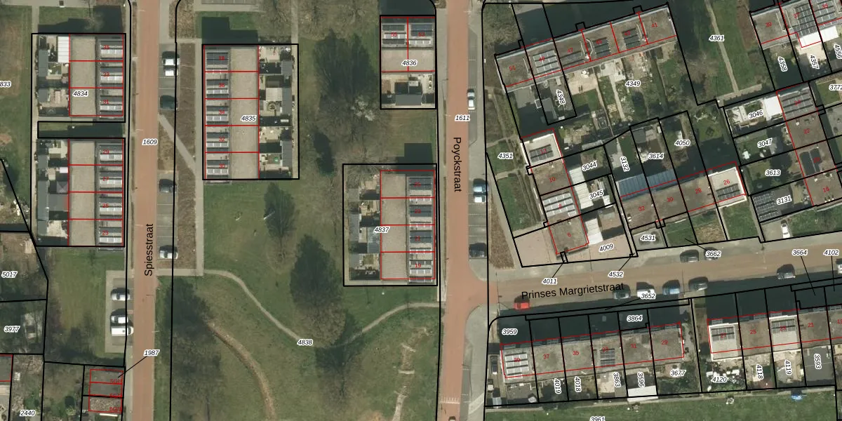 Het perceel waarop Poyckstraat 23 staat heeft een oppervlakte van 640 m². Dit is een groot perceel. De perceeloppervlakte wordt geregistreerd door het Kadaster. Gedetailleerde informatie over de maten van dit perceel kunt u vinden in het rapport Kadastrale kaart met maatvoering van Poyckstraat 23.