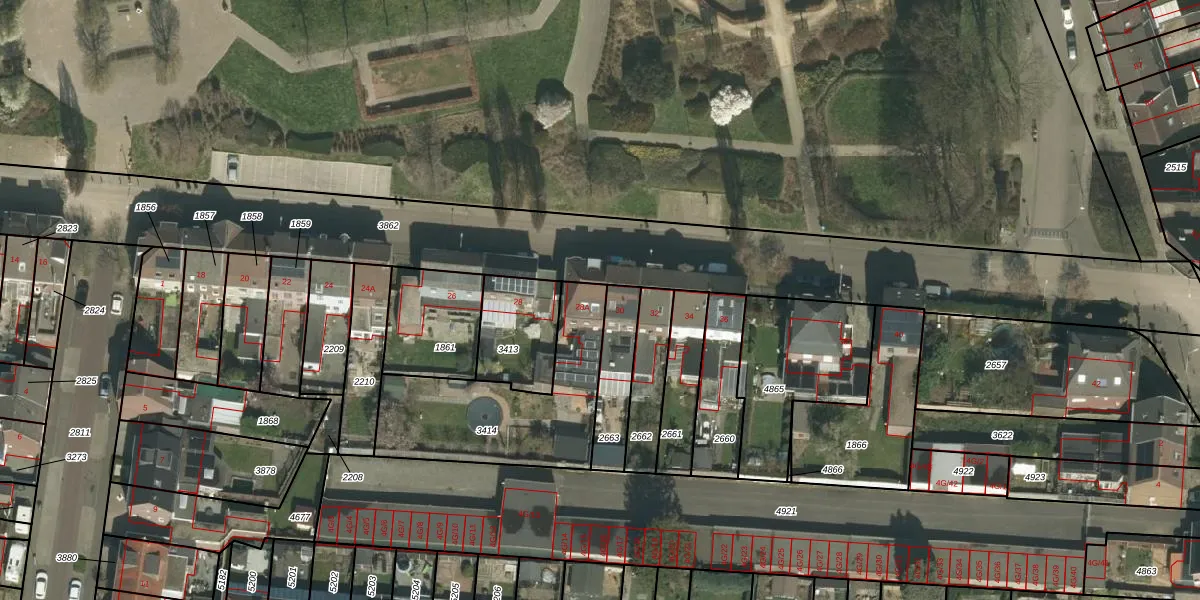 Gebruik de zoekbalk of klik op een perceel voor informatie over de adressen binnen dit perceel.