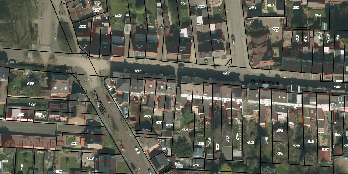 Pricksteenweg 54 is gelegen op kadastraal perceel KRD00F3774. Deze kadastrale aanduiding is uniek en wordt gebruikt door het Kadaster om eigendomsrechten en andere zakelijke rechten vast te leggen. Het perceel maakt onderdeel uit van de kadastrale gemeente Kerkrade.