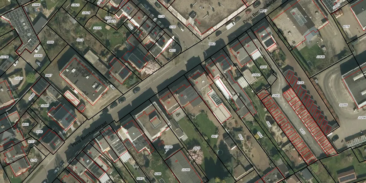 Het perceel waarop Prins Bernhardstraat 26 staat heeft een oppervlakte van 770 m². Dit is een groot perceel. De perceeloppervlakte wordt geregistreerd door het Kadaster. Gedetailleerde informatie over de maten van dit perceel kunt u vinden in het rapport Kadastrale kaart met maatvoering van Prins Bernhardstraat 26.
