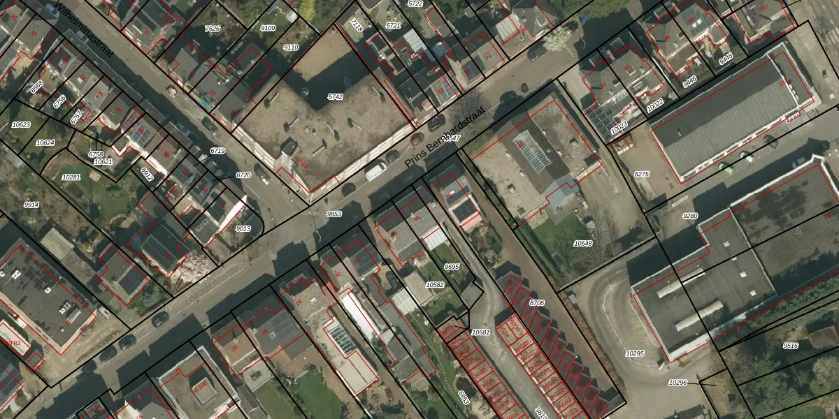 Prins Bernhardstraat 36 is gelegen op kadastraal perceel KRD00B9695. Deze kadastrale aanduiding is uniek en wordt gebruikt door het Kadaster om eigendomsrechten en andere zakelijke rechten vast te leggen. Het perceel maakt onderdeel uit van de kadastrale gemeente Kerkrade.
