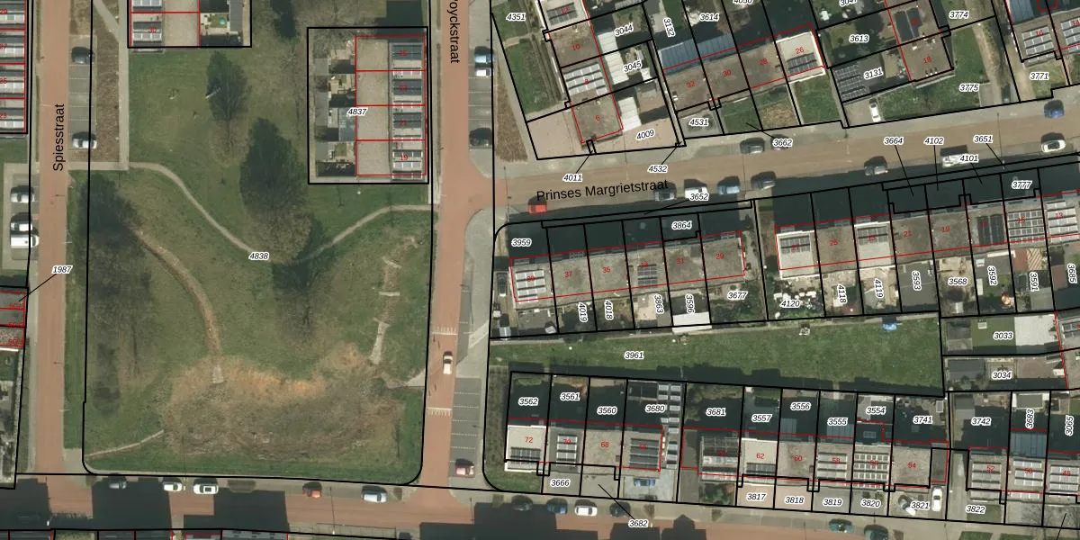 Gebruik de zoekbalk of klik op een perceel voor informatie over de adressen binnen dit perceel.