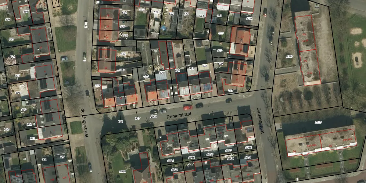 Het perceel waarop Renierstraat 6 staat heeft een oppervlakte van 303 m². Dit is een groot perceel. De perceeloppervlakte wordt geregistreerd door het Kadaster. Gedetailleerde informatie over de maten van dit perceel kunt u vinden in het rapport Kadastrale kaart met maatvoering van Renierstraat 6.