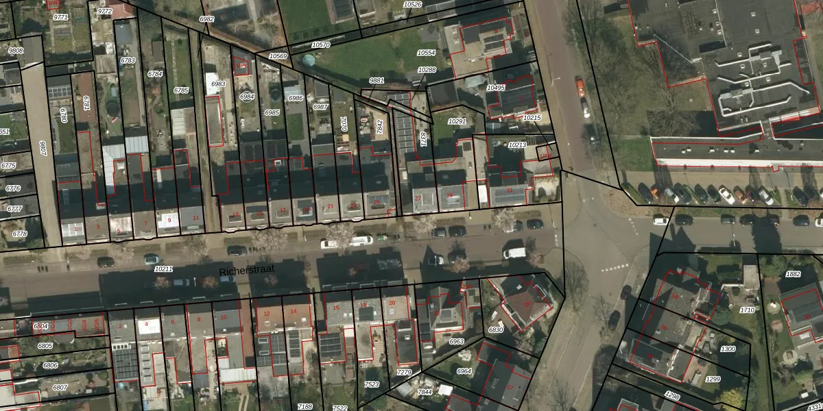 Het perceel waarop Richerstraat 27 staat heeft een oppervlakte van 215 m². Dit is een middelgroot perceel. De perceeloppervlakte wordt geregistreerd door het Kadaster. Gedetailleerde informatie over de maten van dit perceel kunt u vinden in het rapport Kadastrale kaart met maatvoering van Richerstraat 27.