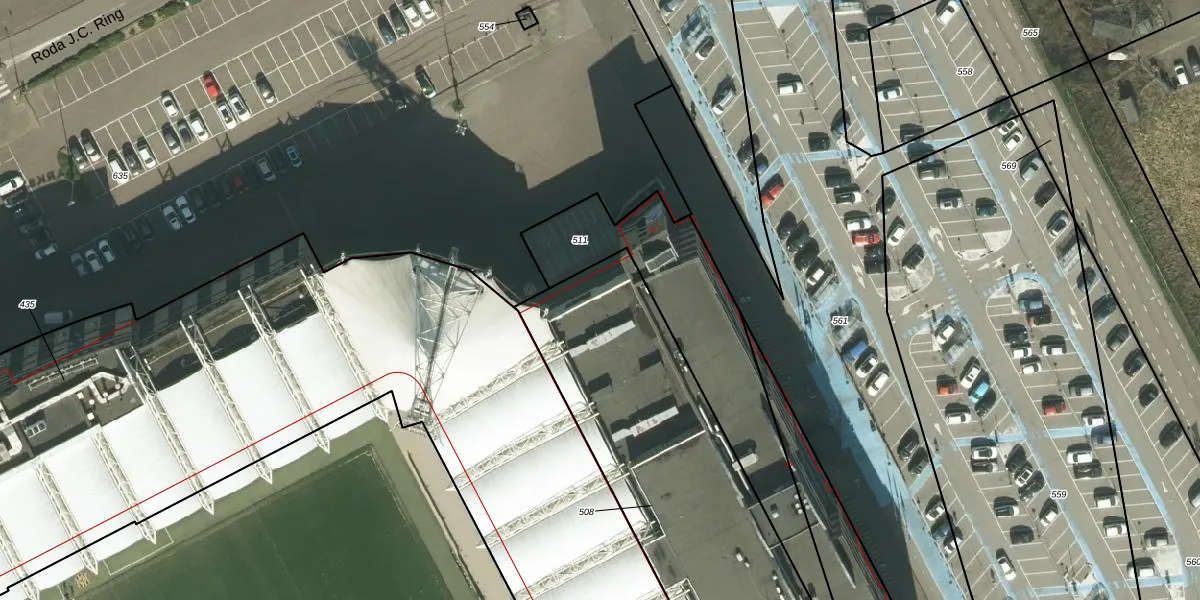 Het perceel waarop Roda J.C. Ring 3 staat heeft een oppervlakte van 1813 m². Dit is een zeer groot perceel. De perceeloppervlakte wordt geregistreerd door het Kadaster. Gedetailleerde informatie over de maten van dit perceel kunt u vinden in het rapport Kadastrale kaart met maatvoering van Roda J.C. Ring 3.