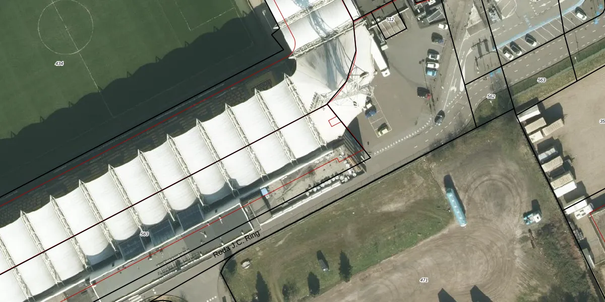 Het perceel waarop Roda J.C. Ring 51 staat heeft een oppervlakte van 2978 m². Dit is een zeer groot perceel. De perceeloppervlakte wordt geregistreerd door het Kadaster. Gedetailleerde informatie over de maten van dit perceel kunt u vinden in het rapport Kadastrale kaart met maatvoering van Roda J.C. Ring 51.