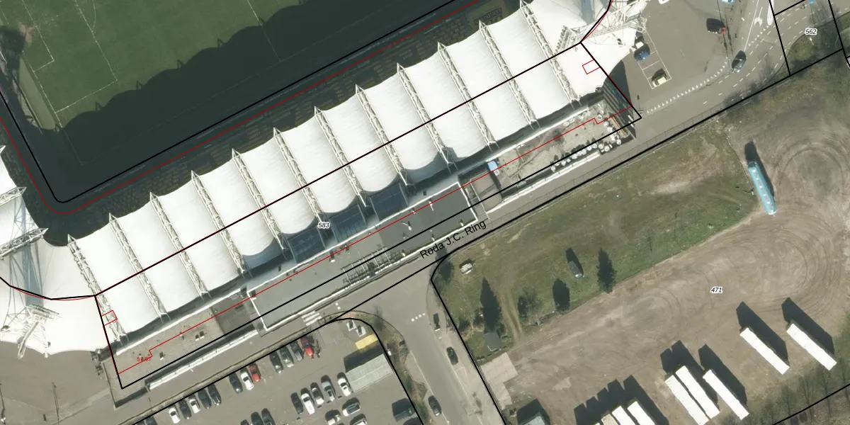 Het perceel waarop Roda J.C. Ring 57 staat heeft een oppervlakte van 2978 m². Dit is een zeer groot perceel. De perceeloppervlakte wordt geregistreerd door het Kadaster. Gedetailleerde informatie over de maten van dit perceel kunt u vinden in het rapport Kadastrale kaart met maatvoering van Roda J.C. Ring 57.