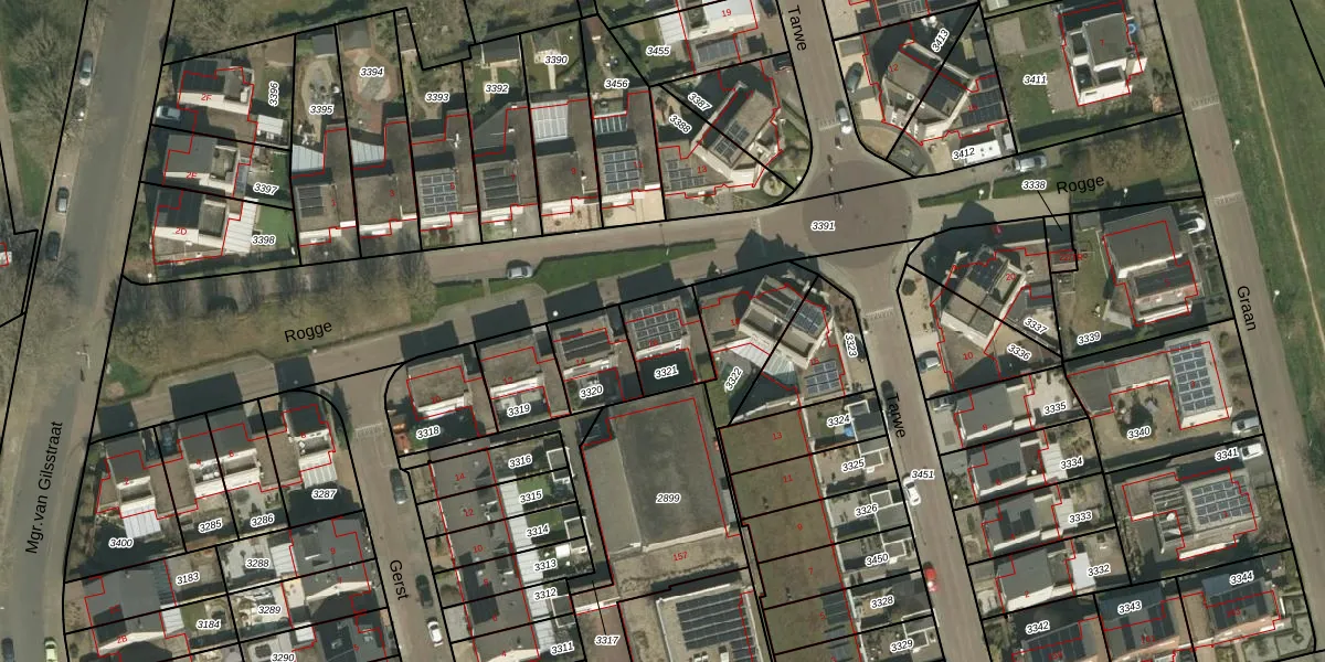Het perceel waarop Rogge 16 staat heeft een oppervlakte van 166 m². Dit is een middelgroot perceel. De perceeloppervlakte wordt geregistreerd door het Kadaster. Gedetailleerde informatie over de maten van dit perceel kunt u vinden in het rapport Kadastrale kaart met maatvoering van Rogge 16.