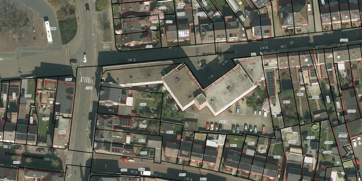 Rolduckerstraat 12-A is gelegen op kadastraal perceel KRD00B10278. Deze kadastrale aanduiding is uniek en wordt gebruikt door het Kadaster om eigendomsrechten en andere zakelijke rechten vast te leggen. Het perceel maakt onderdeel uit van de kadastrale gemeente Kerkrade.