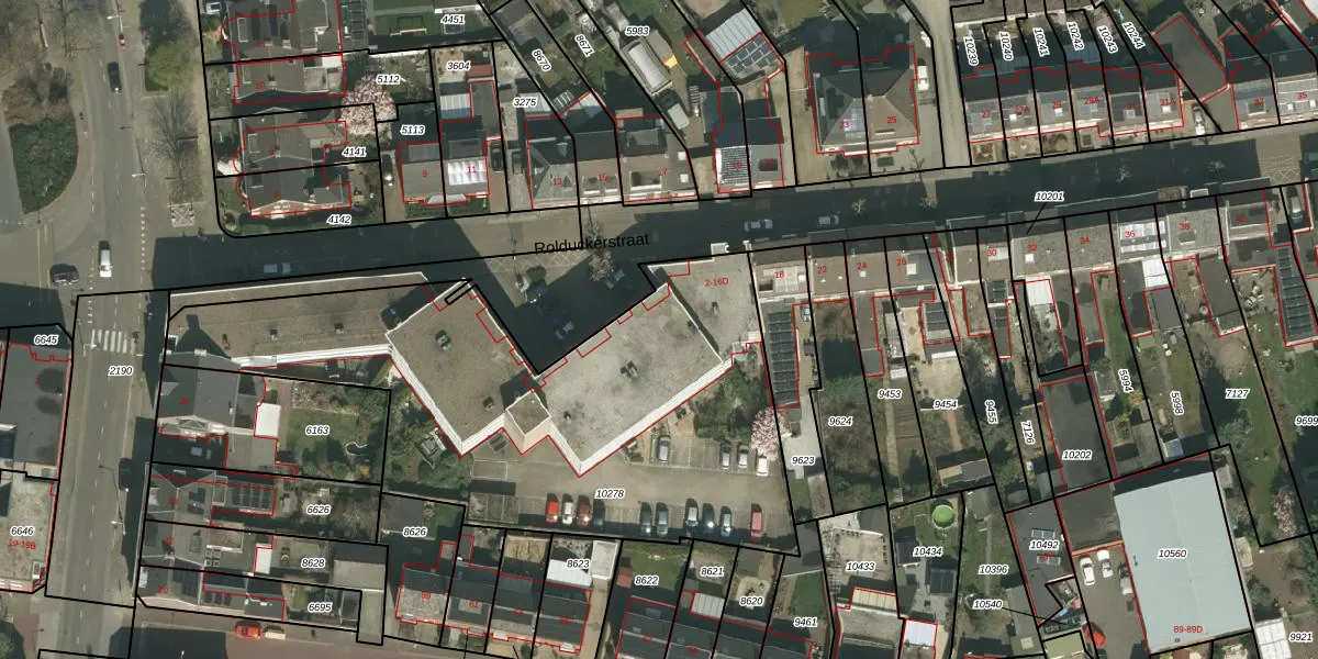 Rolduckerstraat 16-B is gelegen op kadastraal perceel KRD00B10278. Deze kadastrale aanduiding is uniek en wordt gebruikt door het Kadaster om eigendomsrechten en andere zakelijke rechten vast te leggen. Het perceel maakt onderdeel uit van de kadastrale gemeente Kerkrade.