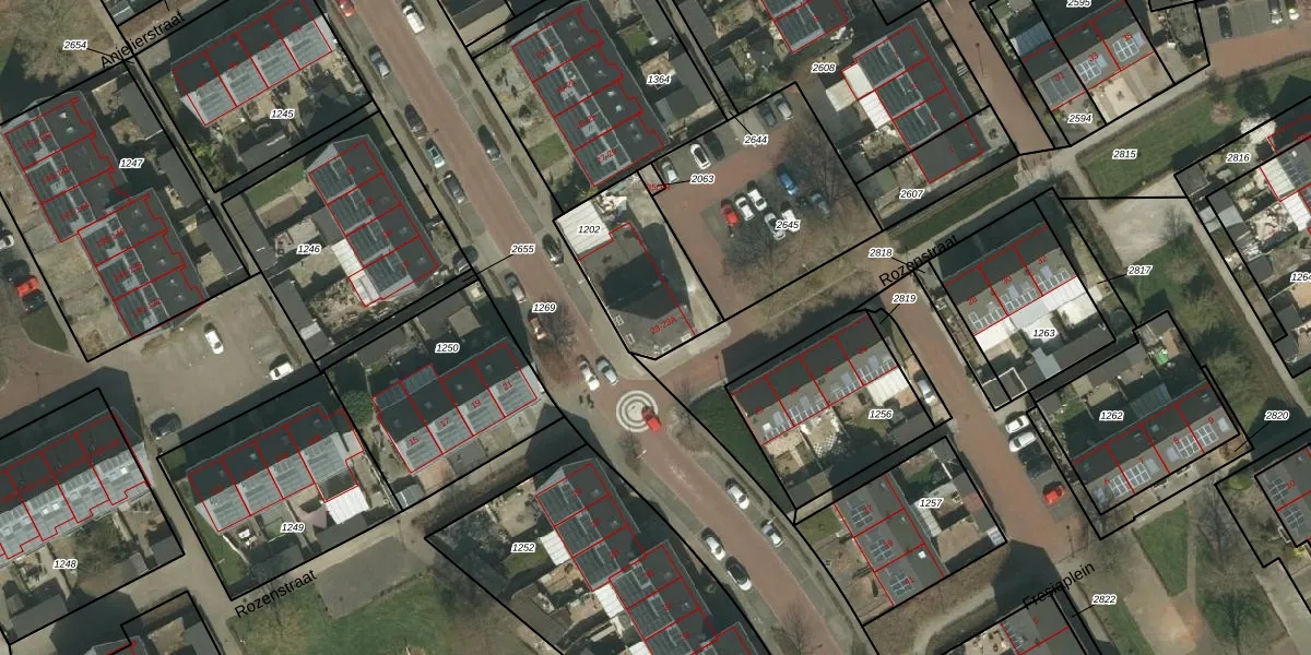Rozenstraat 23-A is gelegen op kadastraal perceel KRD00H1202. Deze kadastrale aanduiding is uniek en wordt gebruikt door het Kadaster om eigendomsrechten en andere zakelijke rechten vast te leggen. Het perceel maakt onderdeel uit van de kadastrale gemeente Kerkrade.