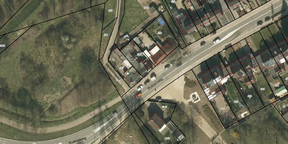Rukkerweg 229 is gelegen op kadastraal perceel KRD00M168. Deze kadastrale aanduiding is uniek en wordt gebruikt door het Kadaster om eigendomsrechten en andere zakelijke rechten vast te leggen. Het perceel maakt onderdeel uit van de kadastrale gemeente Kerkrade.