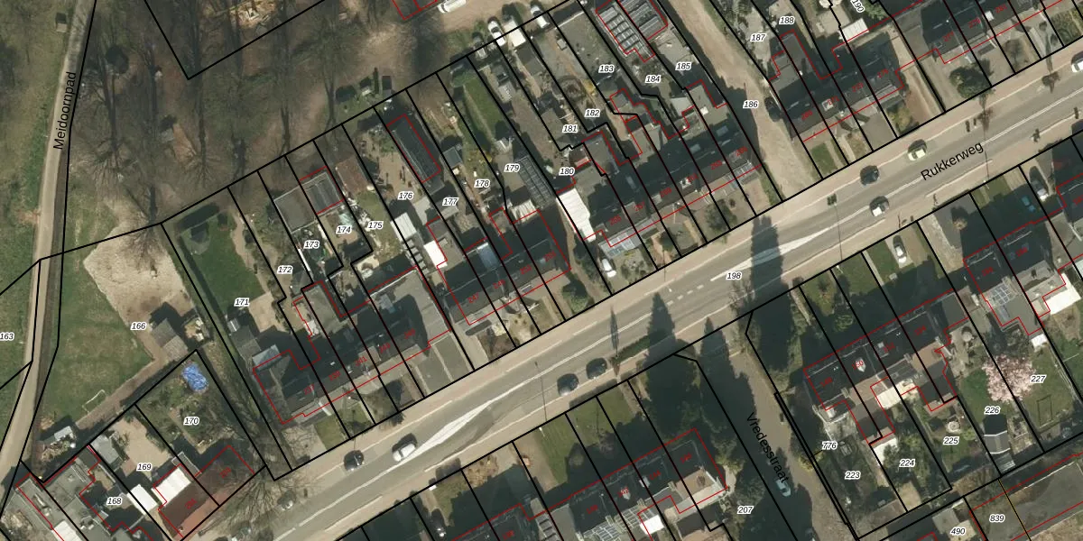 Rukkerweg 253 is gelegen op kadastraal perceel KRD00M179. Deze kadastrale aanduiding is uniek en wordt gebruikt door het Kadaster om eigendomsrechten en andere zakelijke rechten vast te leggen. Het perceel maakt onderdeel uit van de kadastrale gemeente Kerkrade.