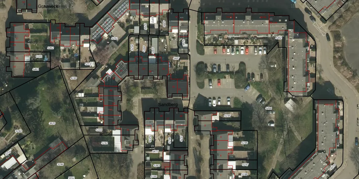 Het perceel waarop Sandberg 33 staat heeft een oppervlakte van 563 m². Dit is een groot perceel. De perceeloppervlakte wordt geregistreerd door het Kadaster. Gedetailleerde informatie over de maten van dit perceel kunt u vinden in het rapport Kadastrale kaart met maatvoering van Sandberg 33.