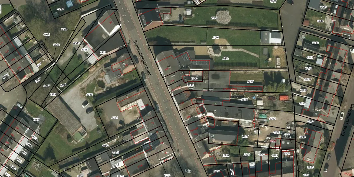 Schaesbergerstraat 112-A is gelegen op kadastraal perceel KRD00A6336. Deze kadastrale aanduiding is uniek en wordt gebruikt door het Kadaster om eigendomsrechten en andere zakelijke rechten vast te leggen. Het perceel maakt onderdeel uit van de kadastrale gemeente Kerkrade.