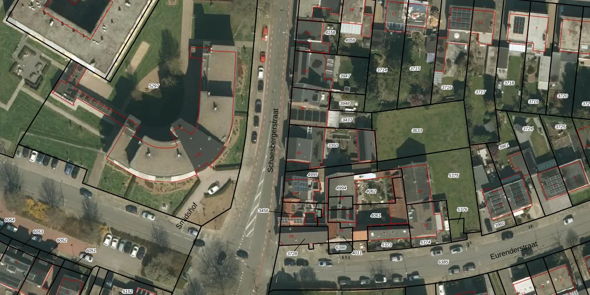 Schaesbergerstraat 42 is gelegen op kadastraal perceel KRD00A3350. Deze kadastrale aanduiding is uniek en wordt gebruikt door het Kadaster om eigendomsrechten en andere zakelijke rechten vast te leggen. Het perceel maakt onderdeel uit van de kadastrale gemeente Kerkrade.