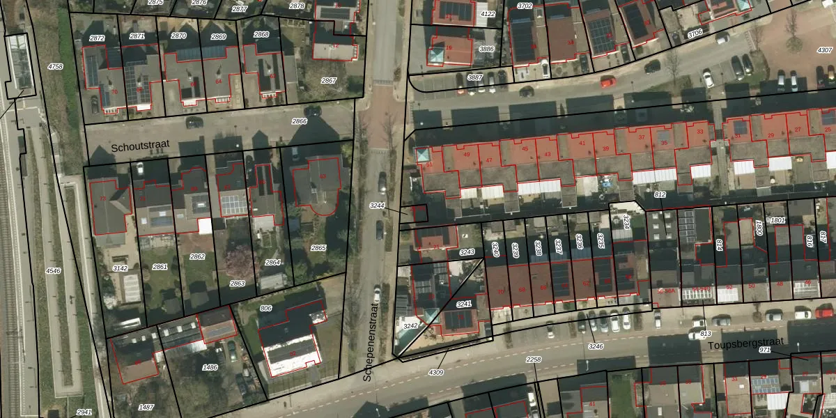 Schepenenstraat 21-TR is gelegen op kadastraal perceel KRD00G3244. Deze kadastrale aanduiding is uniek en wordt gebruikt door het Kadaster om eigendomsrechten en andere zakelijke rechten vast te leggen. Het perceel maakt onderdeel uit van de kadastrale gemeente Kerkrade.