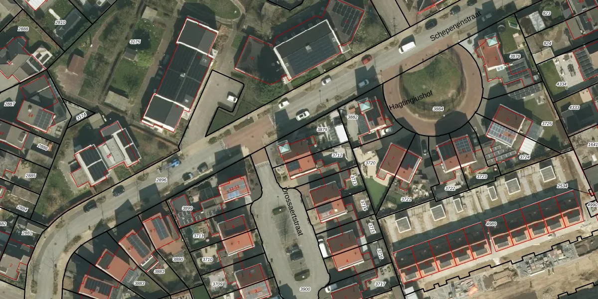 Schepenenstraat 5 is gelegen op kadastraal perceel KRD00G3879. Deze kadastrale aanduiding is uniek en wordt gebruikt door het Kadaster om eigendomsrechten en andere zakelijke rechten vast te leggen. Het perceel maakt onderdeel uit van de kadastrale gemeente Kerkrade.