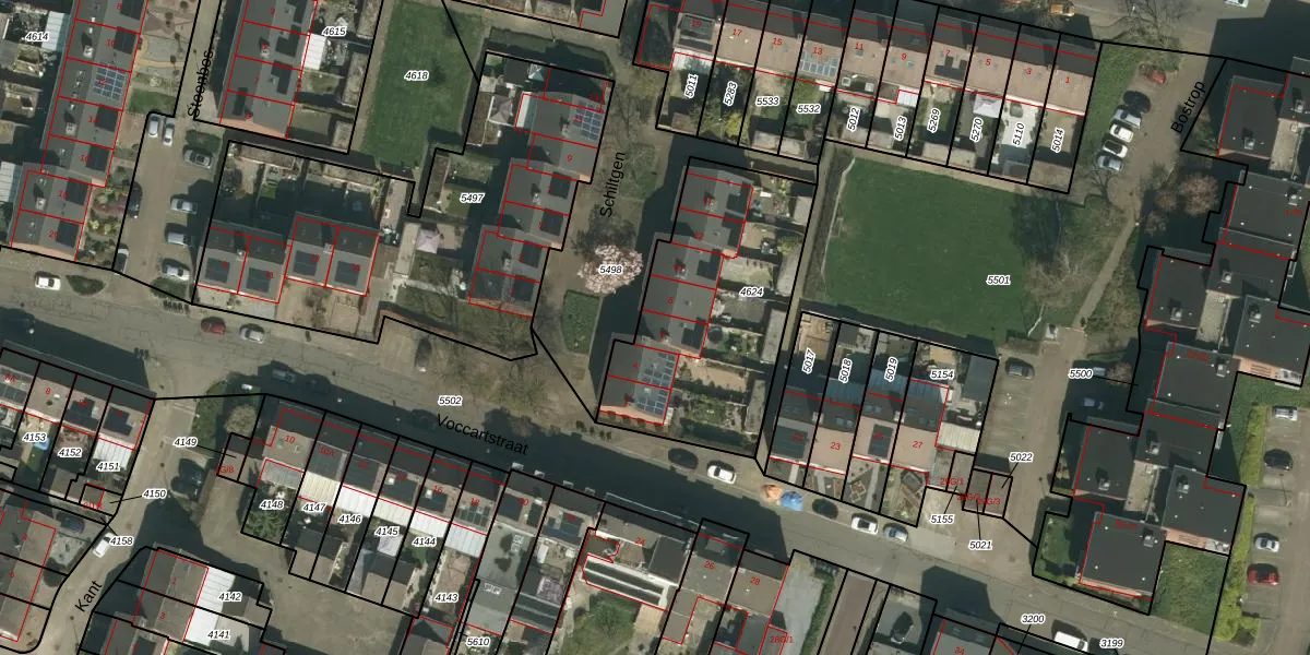 Het perceel waarop Schiltgen 6 staat heeft een oppervlakte van 960 m². Dit is een groot perceel. De perceeloppervlakte wordt geregistreerd door het Kadaster. Gedetailleerde informatie over de maten van dit perceel kunt u vinden in het rapport Kadastrale kaart met maatvoering van Schiltgen 6.
