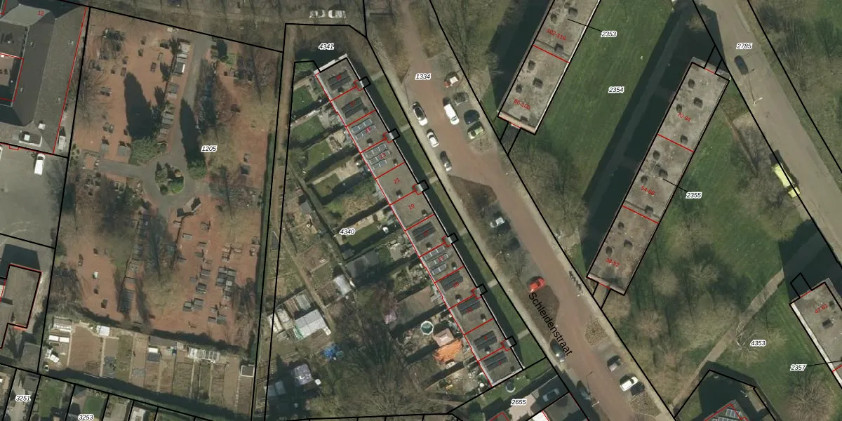Het perceel waarop Schleidenstraat 19 staat heeft een oppervlakte van 3300 m². Dit is een zeer groot perceel. De perceeloppervlakte wordt geregistreerd door het Kadaster. Gedetailleerde informatie over de maten van dit perceel kunt u vinden in het rapport Kadastrale kaart met maatvoering van Schleidenstraat 19.