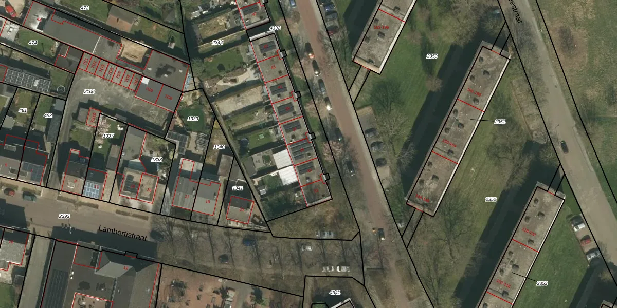 Het perceel waarop Schleidenstraat 35 staat heeft een oppervlakte van 2980 m². Dit is een zeer groot perceel. De perceeloppervlakte wordt geregistreerd door het Kadaster. Gedetailleerde informatie over de maten van dit perceel kunt u vinden in het rapport Kadastrale kaart met maatvoering van Schleidenstraat 35.