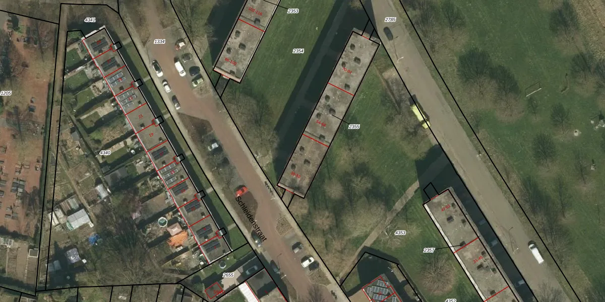 Het perceel waarop Schleidenstraat 46 staat heeft een oppervlakte van 600 m². Dit is een groot perceel. De perceeloppervlakte wordt geregistreerd door het Kadaster. Gedetailleerde informatie over de maten van dit perceel kunt u vinden in het rapport Kadastrale kaart met maatvoering van Schleidenstraat 46.