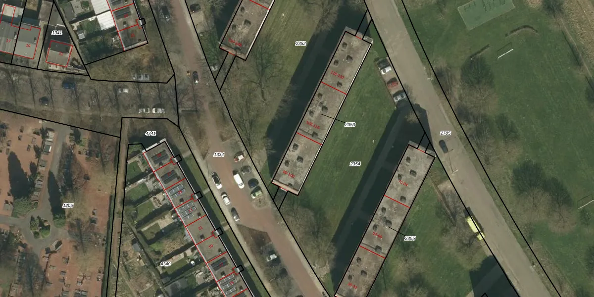 Het perceel waarop Schleidenstraat 96 staat heeft een oppervlakte van 615 m². Dit is een groot perceel. De perceeloppervlakte wordt geregistreerd door het Kadaster. Gedetailleerde informatie over de maten van dit perceel kunt u vinden in het rapport Kadastrale kaart met maatvoering van Schleidenstraat 96.