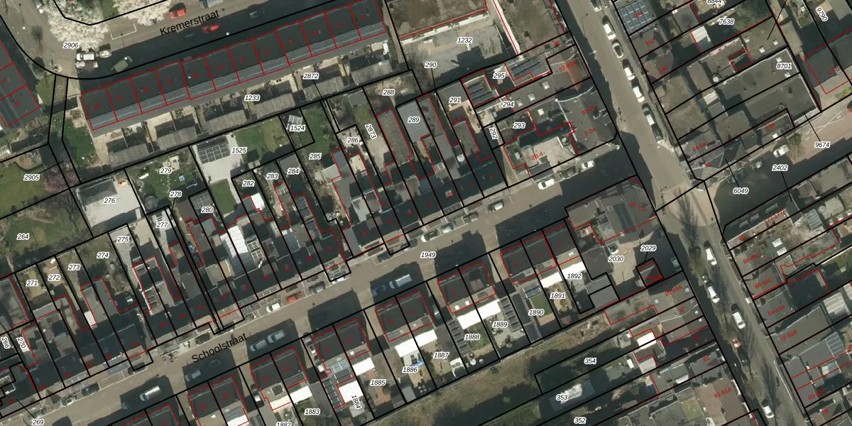 Schoolstraat 12 is gelegen op kadastraal perceel KRD00K288. Deze kadastrale aanduiding is uniek en wordt gebruikt door het Kadaster om eigendomsrechten en andere zakelijke rechten vast te leggen. Het perceel maakt onderdeel uit van de kadastrale gemeente Kerkrade.