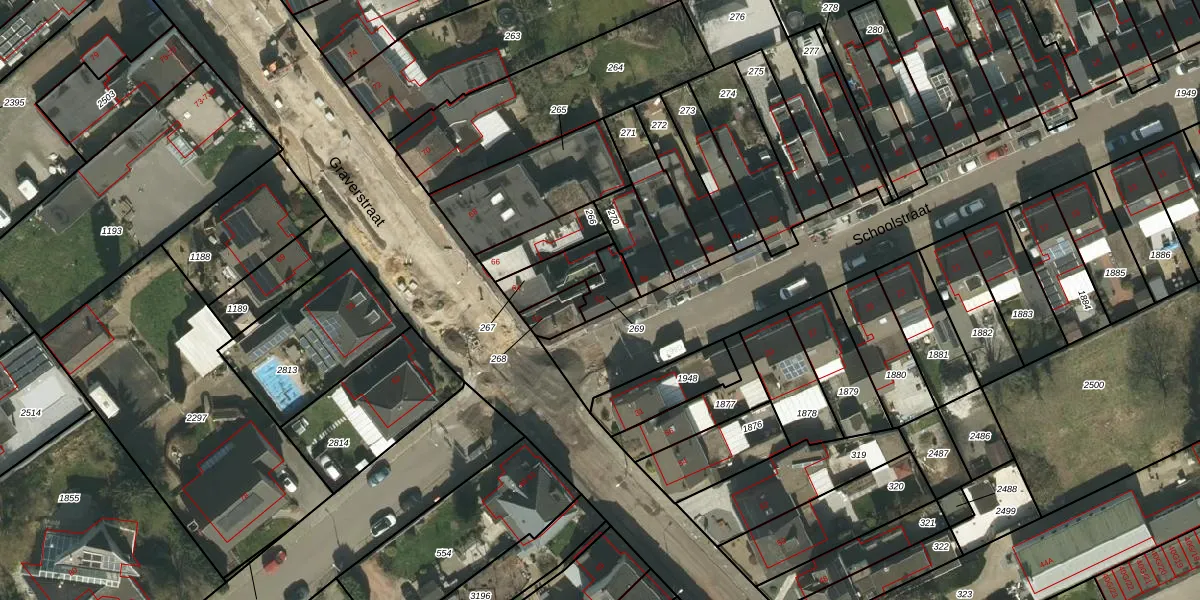 Het perceel waarop Schoolstraat 52 staat heeft een oppervlakte van 65 m². Dit is een klein perceel. De perceeloppervlakte wordt geregistreerd door het Kadaster. Gedetailleerde informatie over de maten van dit perceel kunt u vinden in het rapport Kadastrale kaart met maatvoering van Schoolstraat 52.