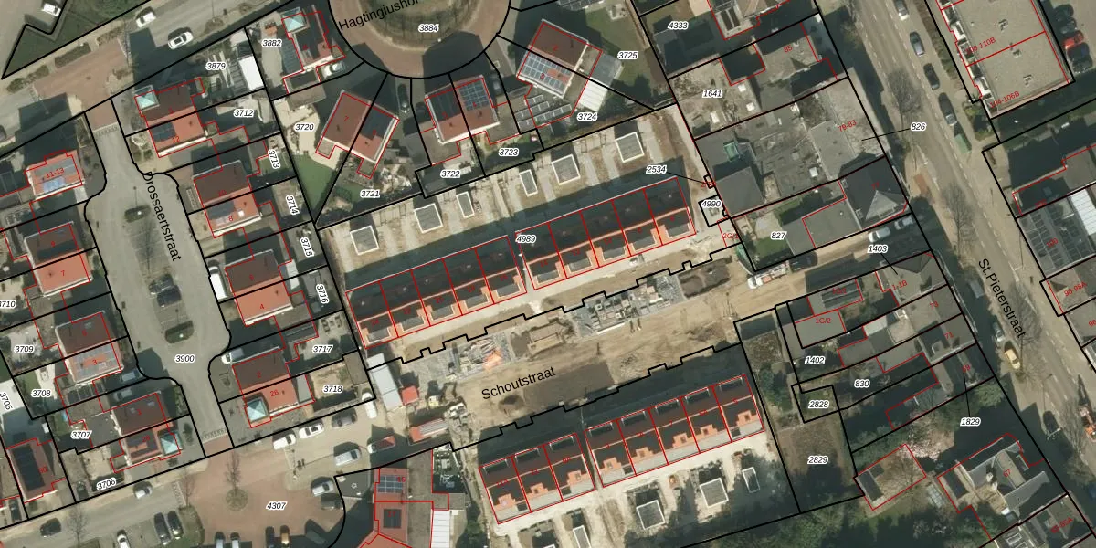 Schoutstraat 14 is gelegen op kadastraal perceel KRD00G4989. Deze kadastrale aanduiding is uniek en wordt gebruikt door het Kadaster om eigendomsrechten en andere zakelijke rechten vast te leggen. Het perceel maakt onderdeel uit van de kadastrale gemeente Kerkrade.