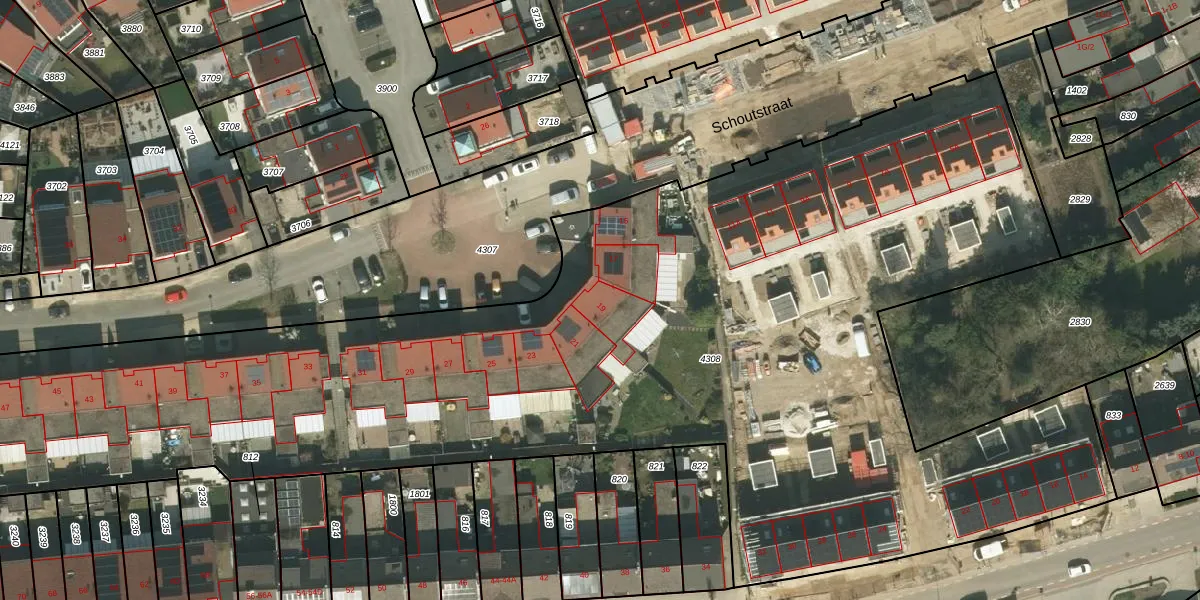 Schoutstraat 19 is gelegen op kadastraal perceel KRD00G4308. Deze kadastrale aanduiding is uniek en wordt gebruikt door het Kadaster om eigendomsrechten en andere zakelijke rechten vast te leggen. Het perceel maakt onderdeel uit van de kadastrale gemeente Kerkrade.