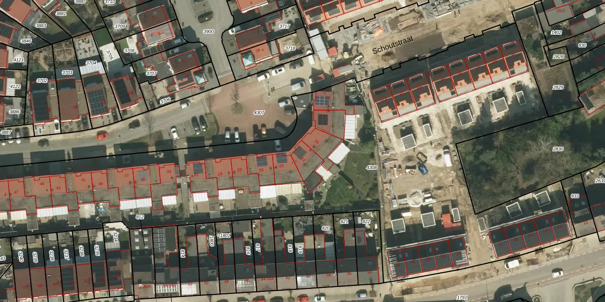 Schoutstraat 21 is gelegen op kadastraal perceel KRD00G4308. Deze kadastrale aanduiding is uniek en wordt gebruikt door het Kadaster om eigendomsrechten en andere zakelijke rechten vast te leggen. Het perceel maakt onderdeel uit van de kadastrale gemeente Kerkrade.