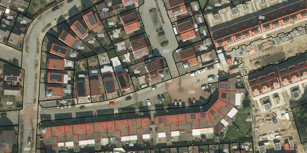Schoutstraat 28 is gelegen op kadastraal perceel KRD00G3706. Deze kadastrale aanduiding is uniek en wordt gebruikt door het Kadaster om eigendomsrechten en andere zakelijke rechten vast te leggen. Het perceel maakt onderdeel uit van de kadastrale gemeente Kerkrade.
