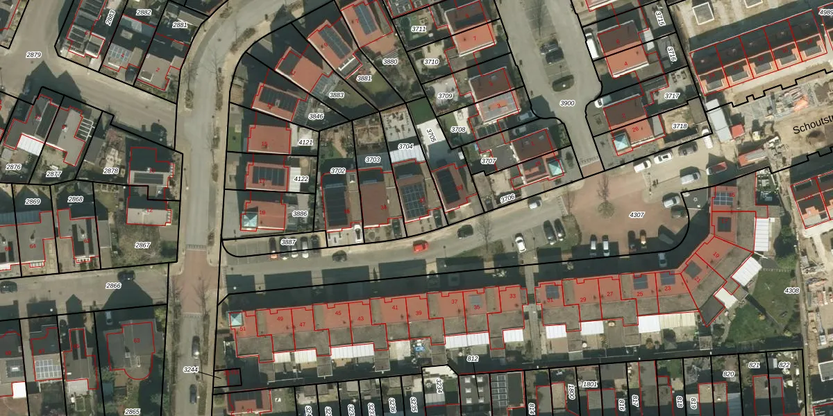 Schoutstraat 32 is gelegen op kadastraal perceel KRD00G3704. Deze kadastrale aanduiding is uniek en wordt gebruikt door het Kadaster om eigendomsrechten en andere zakelijke rechten vast te leggen. Het perceel maakt onderdeel uit van de kadastrale gemeente Kerkrade.