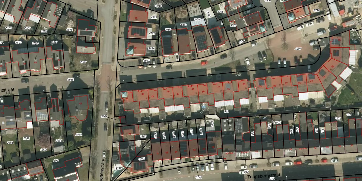 Het perceel waarop Schoutstraat 43 staat heeft een oppervlakte van 7321 m². Dit is een zeer groot perceel. De perceeloppervlakte wordt geregistreerd door het Kadaster. Gedetailleerde informatie over de maten van dit perceel kunt u vinden in het rapport Kadastrale kaart met maatvoering van Schoutstraat 43.