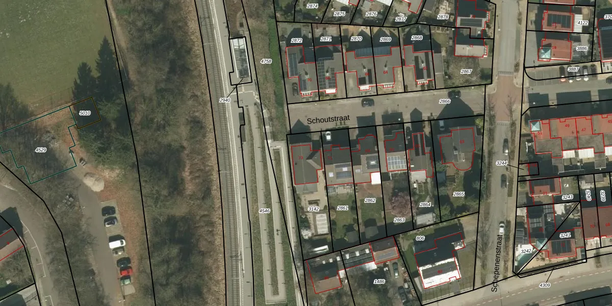 Schoutstraat 73 is gelegen op kadastraal perceel KRD00G3142. Deze kadastrale aanduiding is uniek en wordt gebruikt door het Kadaster om eigendomsrechten en andere zakelijke rechten vast te leggen. Het perceel maakt onderdeel uit van de kadastrale gemeente Kerkrade.