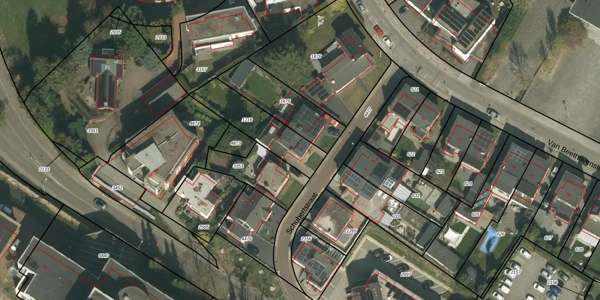 Schubertstraat 5 is gelegen op kadastraal perceel KRD00G1216. Deze kadastrale aanduiding is uniek en wordt gebruikt door het Kadaster om eigendomsrechten en andere zakelijke rechten vast te leggen. Het perceel maakt onderdeel uit van de kadastrale gemeente Kerkrade.