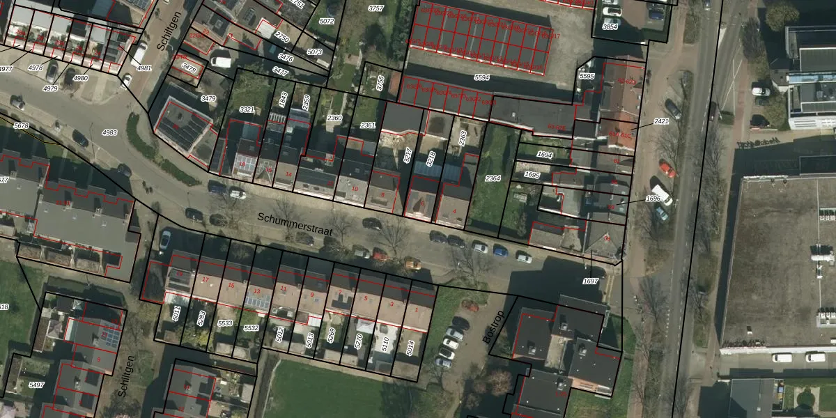 Het perceel waarop Schummerstraat 6 staat heeft een oppervlakte van 192 m². Dit is een middelgroot perceel. De perceeloppervlakte wordt geregistreerd door het Kadaster. Gedetailleerde informatie over de maten van dit perceel kunt u vinden in het rapport Kadastrale kaart met maatvoering van Schummerstraat 6.