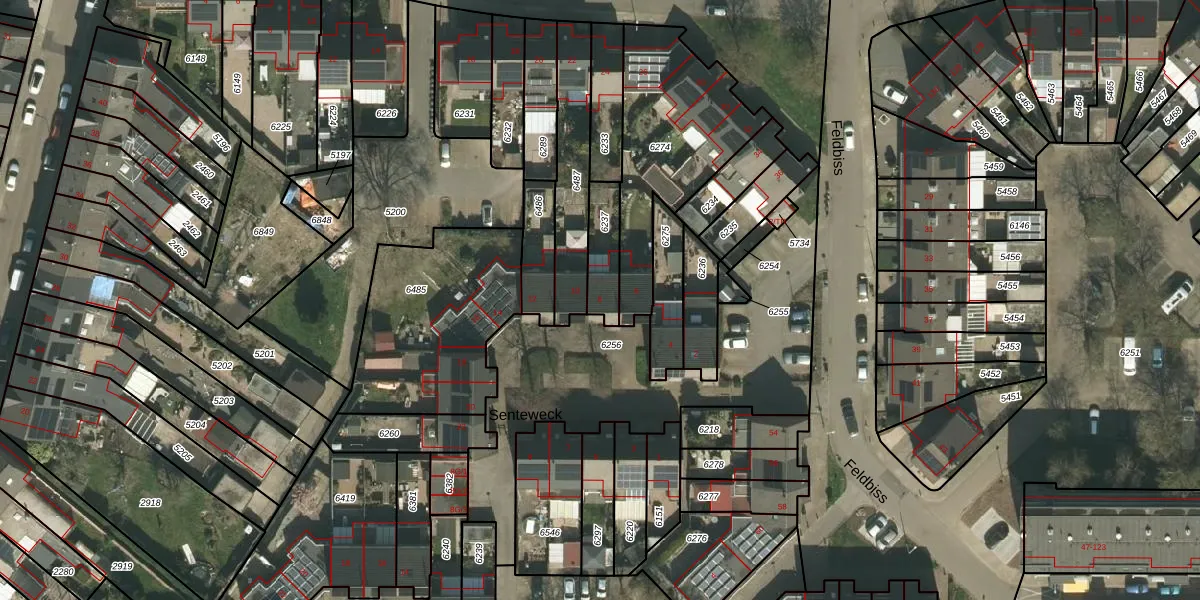 Senteweck 8 is gelegen op kadastraal perceel KRD00E6237. Deze kadastrale aanduiding is uniek en wordt gebruikt door het Kadaster om eigendomsrechten en andere zakelijke rechten vast te leggen. Het perceel maakt onderdeel uit van de kadastrale gemeente Kerkrade.