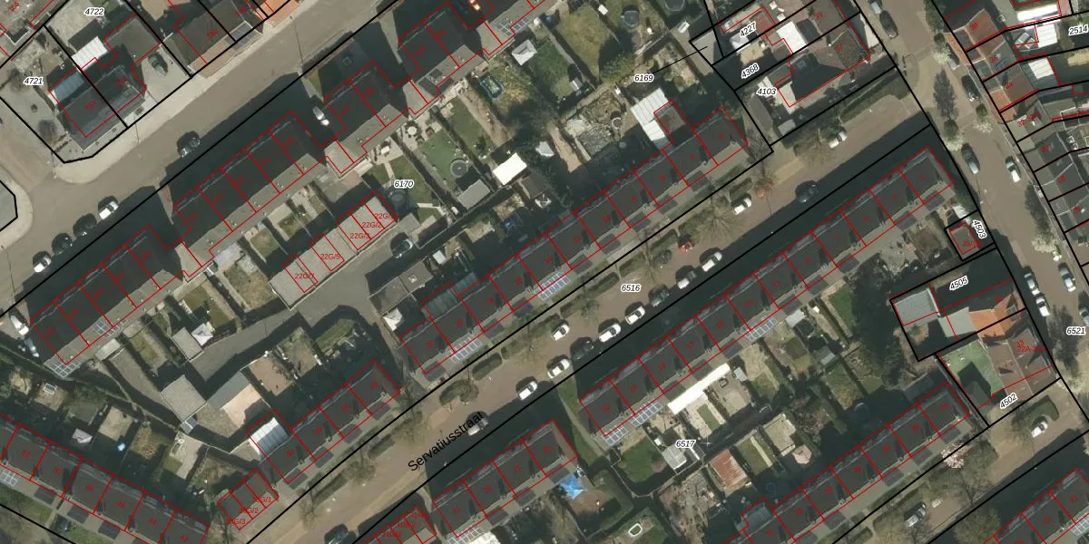 Het perceel waarop Servatiusstraat 14 staat heeft een oppervlakte van 9547 m². Dit is een zeer groot perceel. De perceeloppervlakte wordt geregistreerd door het Kadaster. Gedetailleerde informatie over de maten van dit perceel kunt u vinden in het rapport Kadastrale kaart met maatvoering van Servatiusstraat 14.