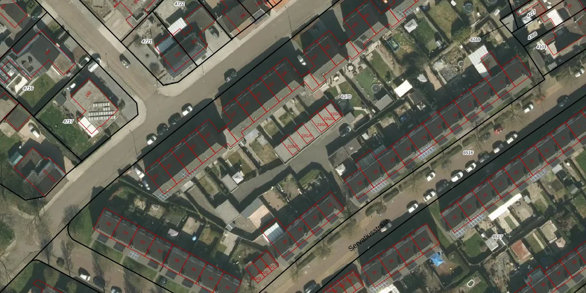 Het perceel waarop Servatiusstraat 22-G-7 staat heeft een oppervlakte van 9547 m². Dit is een zeer groot perceel. De perceeloppervlakte wordt geregistreerd door het Kadaster. Gedetailleerde informatie over de maten van dit perceel kunt u vinden in het rapport Kadastrale kaart met maatvoering van Servatiusstraat 22-G-7.