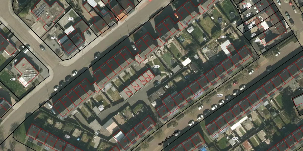 Het perceel waarop Servatiusstraat 22-G-1 staat heeft een oppervlakte van 9547 m². Dit is een zeer groot perceel. De perceeloppervlakte wordt geregistreerd door het Kadaster. Gedetailleerde informatie over de maten van dit perceel kunt u vinden in het rapport Kadastrale kaart met maatvoering van Servatiusstraat 22-G-1.