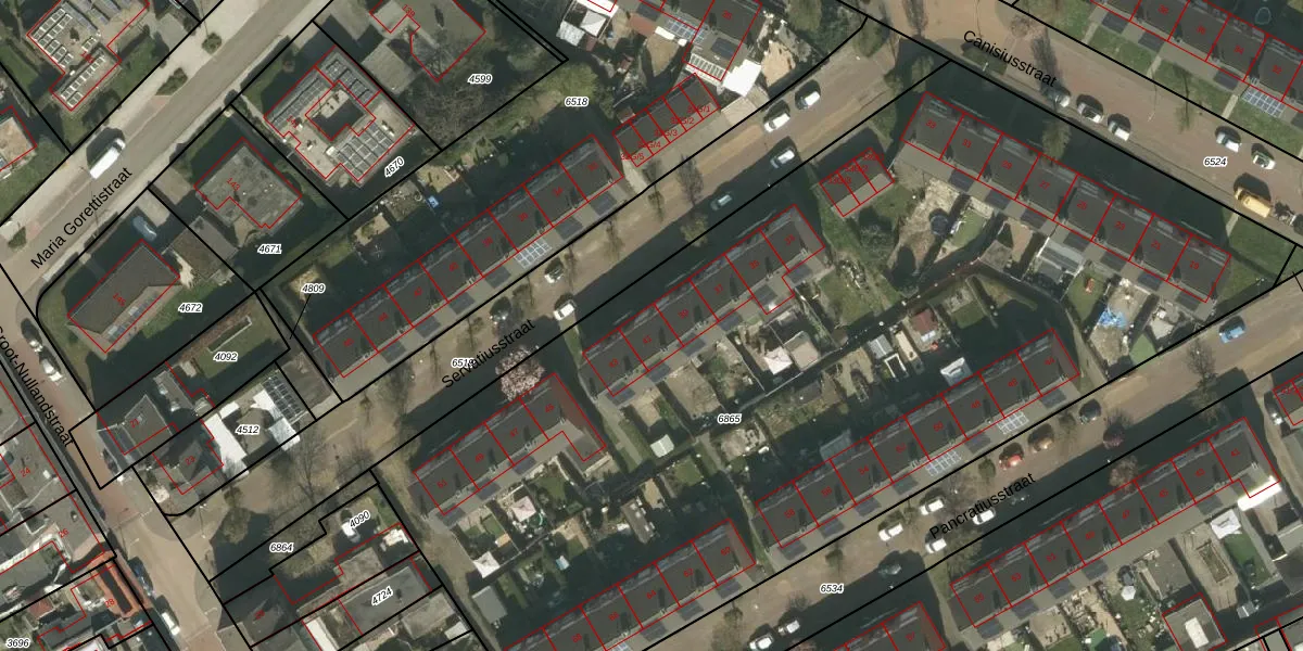 Het perceel waarop Servatiusstraat 41 staat heeft een oppervlakte van 6314 m². Dit is een zeer groot perceel. De perceeloppervlakte wordt geregistreerd door het Kadaster. Gedetailleerde informatie over de maten van dit perceel kunt u vinden in het rapport Kadastrale kaart met maatvoering van Servatiusstraat 41.
