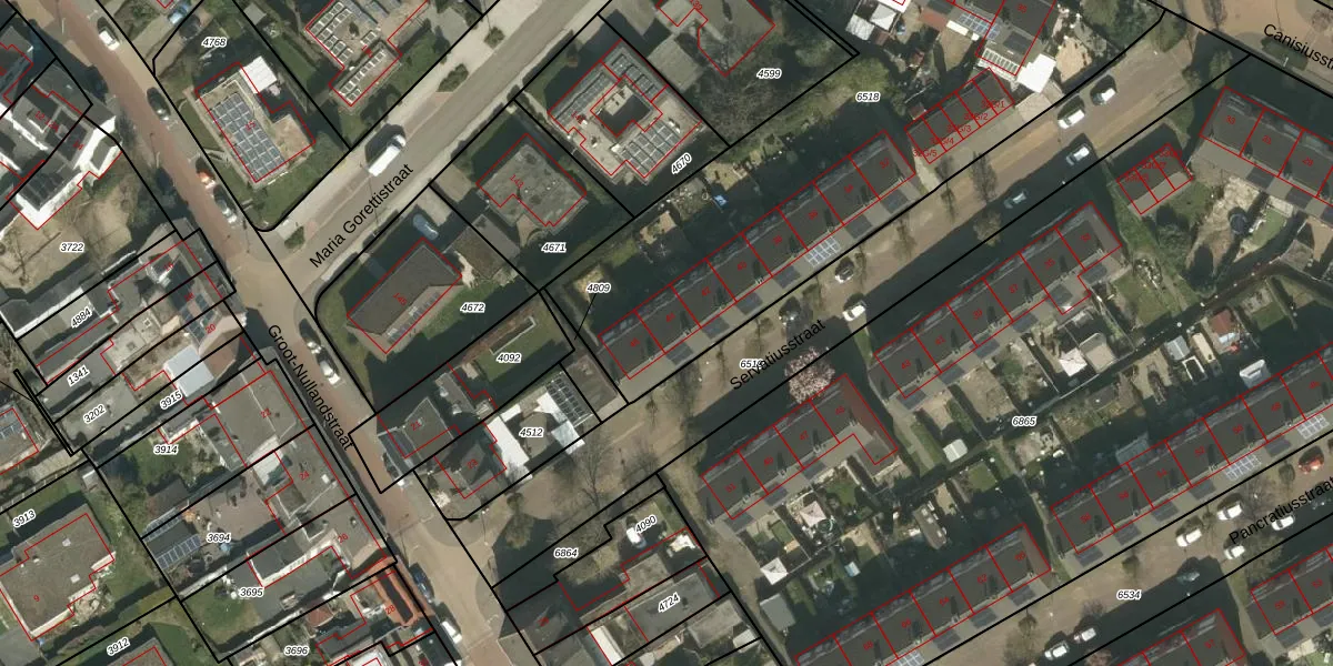 Het perceel waarop Servatiusstraat 44 staat heeft een oppervlakte van 3056 m². Dit is een zeer groot perceel. De perceeloppervlakte wordt geregistreerd door het Kadaster. Gedetailleerde informatie over de maten van dit perceel kunt u vinden in het rapport Kadastrale kaart met maatvoering van Servatiusstraat 44.