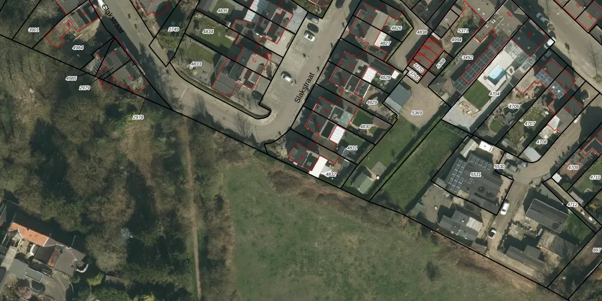 Slakstraat 62 is gelegen op kadastraal perceel KRD00F4832. Deze kadastrale aanduiding is uniek en wordt gebruikt door het Kadaster om eigendomsrechten en andere zakelijke rechten vast te leggen. Het perceel maakt onderdeel uit van de kadastrale gemeente Kerkrade.
